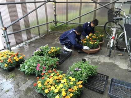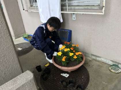 鶴見緑地内での作業の様子です 花の手入れ、土入れをしています。