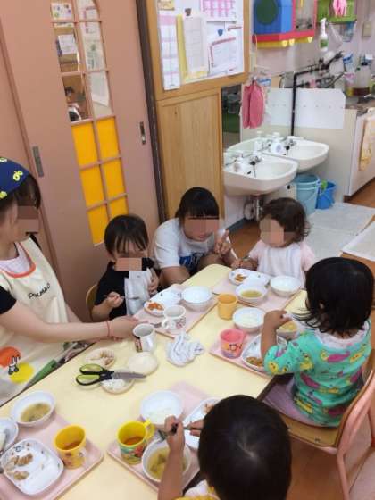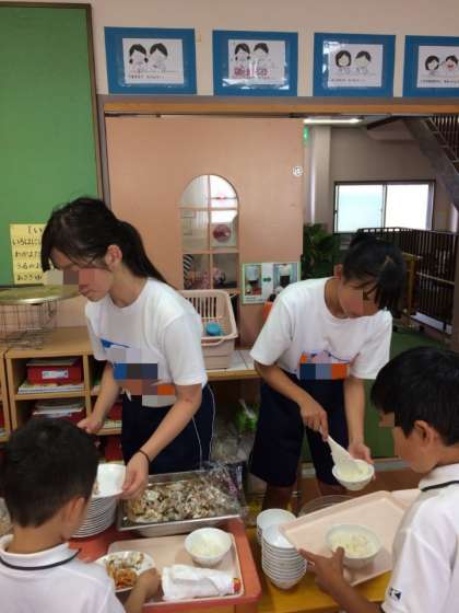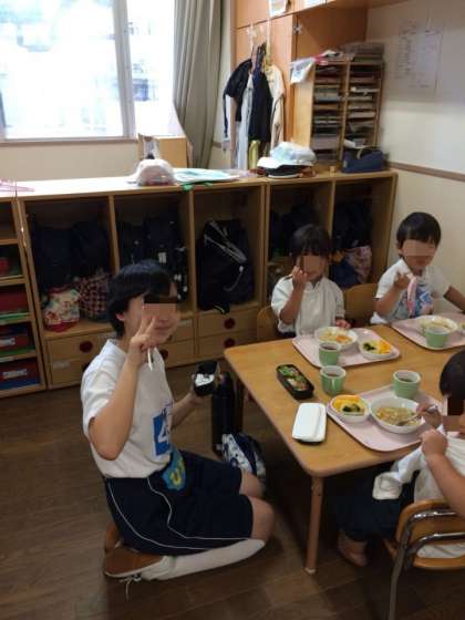 給食を一緒に食べました。