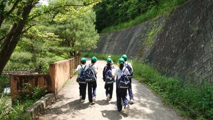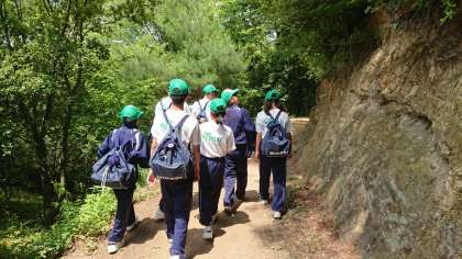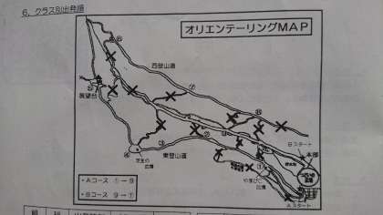 予定より15分遅れでオリエンテーリングが始まりました。山の中を班で協力し地図を見ながらチェックポイントを通過、制限時間内のゴールを目指します。コースはA・Bの2コースです。それぞれのコースの最初の班がスタートしました。