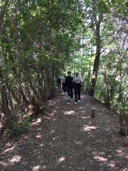 最初に出発した班が頂上付近のチェックポイントに到着しました。