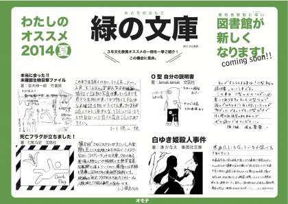文化委員による、おススメ本の紹介です。一学期は3年生の文化委員が「緑の文庫」作成しました。下記のリンクよりご覧いただけます。是非、一読してみてください!