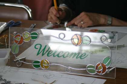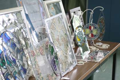 本日の午前中、PTA主催のグラスアート体験が図書室にて行われました。