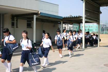 本日1年生の集合時刻は8時。出発時刻は8時半です。お見送りは花博通りでどうぞ。