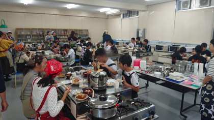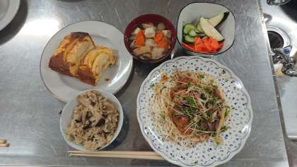 すべてのメニューができあがりました。 みんなでおいしくいただいています。