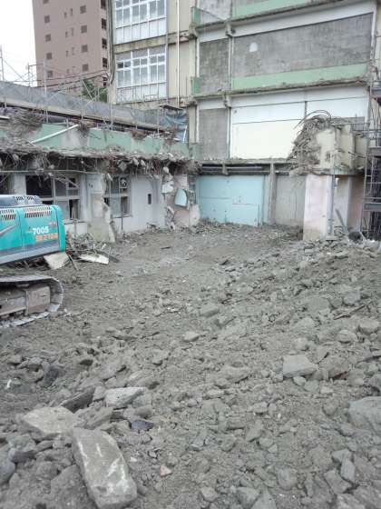 本日の作業はコンクリートがらの搬出と、かき出し及び小割り作業です。