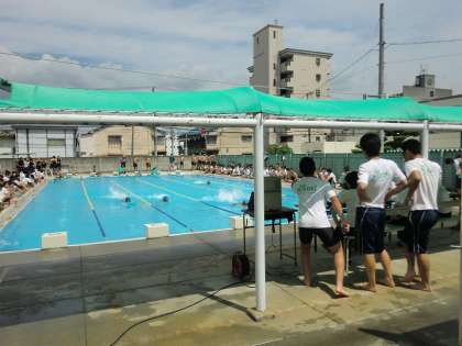 ここ数日の雨模様の隙間を縫って、3年生の水泳大会が行われました。