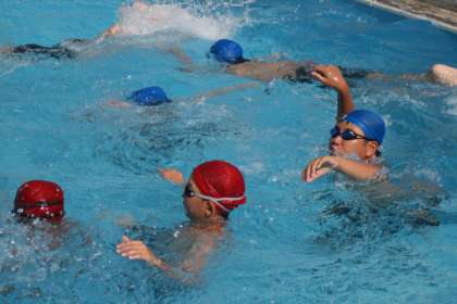 本校は水泳部はありません。しかし夏休みに入りプールで水しぶきが上がっています!