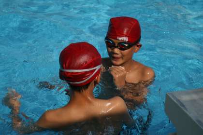 今日は午後から、野球部がトレーニングの一環でプールへ入っていました。暑い一日の涼しいひと時、練習とは言え楽しそうです。