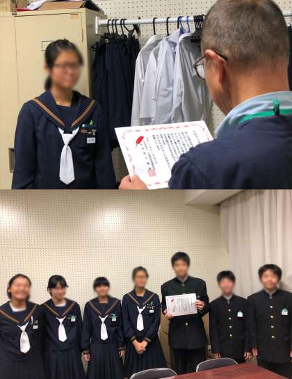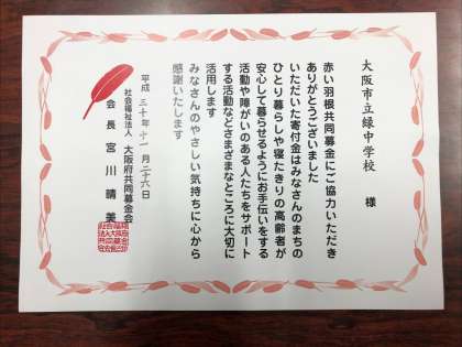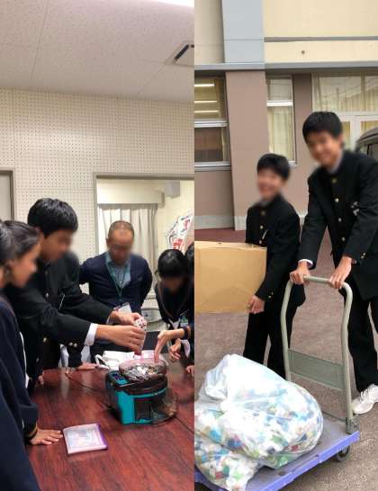 先日ご協力いただきました赤い羽根共同募金と、4月よりご協力いただいておりますペットボトルキャップは、本日生徒会が代表して鶴見区社会福祉協議会にお渡ししました。
