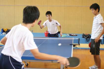 格技場で部活動に励むのは卓球部です。8月のあたまに控えた大会に向けて練習も大詰めを迎えています。どのクラブも大会前、3年間培った技術や精神力で大一番に臨んでください!