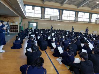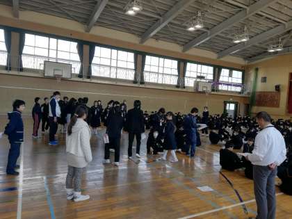 2年生は本日の5限目に百人一首大会に向けた取り組みを体育館でしました。