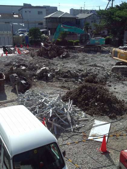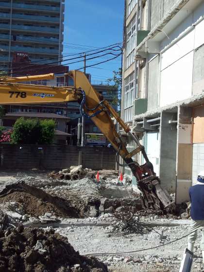 本日の作業は倉庫基礎解体と校舎基礎の解体です。