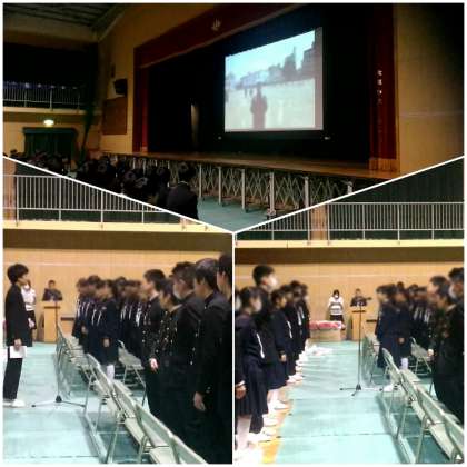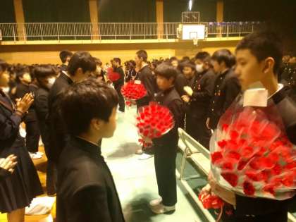 生徒会の司会進行のもと、中学校での懐かしく楽しかった日々を振り返る映像を見たあと、在校生代表あいさつ、卒業生代表あいさつがありました。