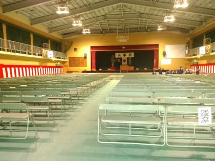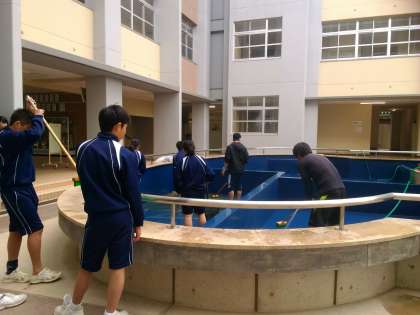 今日は、明日の入学式のための準備を新2、3年生の委員会の生徒、クラブの生徒達と職員で行いました。