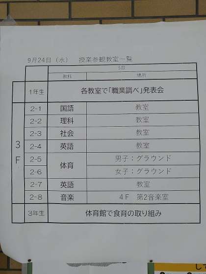 本日5時間目を授業参観としております。