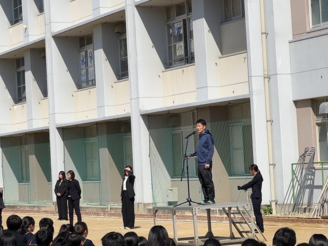 始業式 公開日 2026/04/08 更新日 2026/04/08 学校日記 始業式が行われました。校長先生から新しく転任された先生の紹介がありました。その後、始業式と対面式が行われ、生徒代表で歓迎の言葉と誓いの言葉が述べられました。新しい緑中学校での生活を有意義に過ごしていきましょう。 +2 いいね(0)