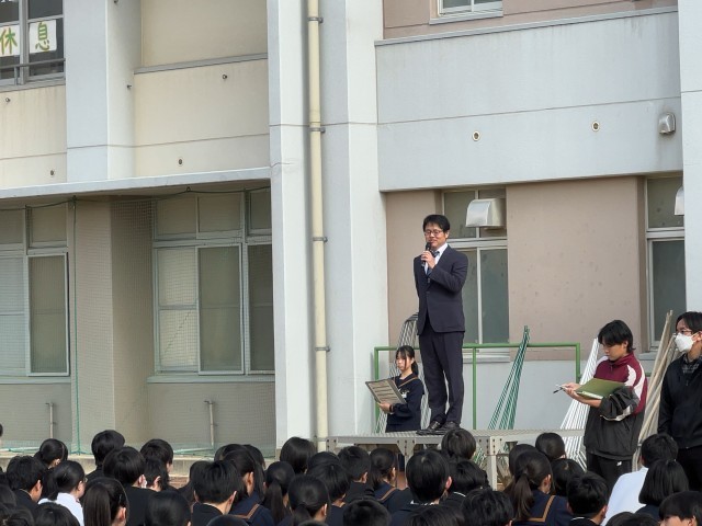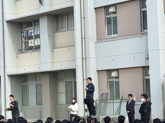 全校集会 公開日 2026/04/13 更新日 2026/04/13 学校日記 新学期が始まり、最初の全校集会となりました。初めての動きもあって少し戸惑いもあったと思います。これから毎週の生活習慣として、時間を守りながら行動できるようにしていきましょう。また、悩み事に関する相談申告機能についての説明がありました。正しい使い方を身につけて、より良い学校生活が送れるようにしていきましょう。 いいね(0)