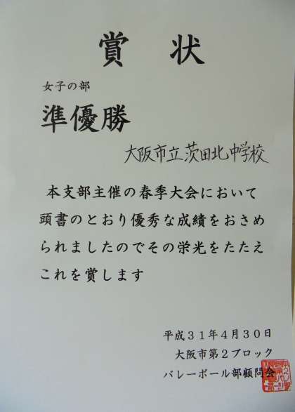 2ブロック大会で準優勝しました。