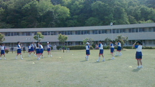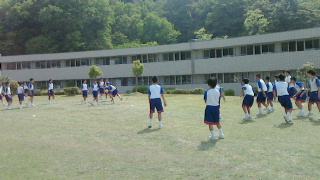 芝生広場でドッジボールです。