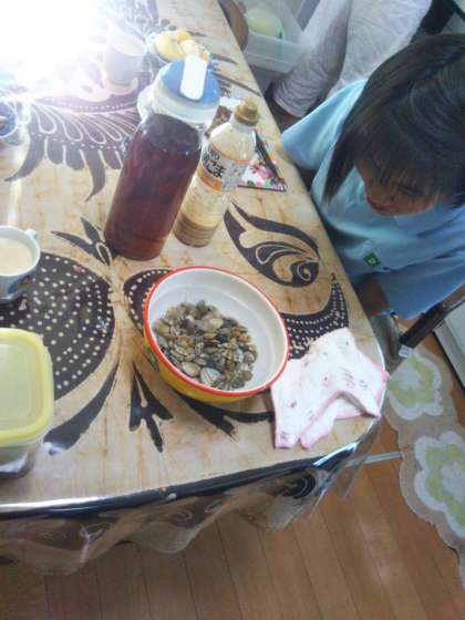 さっき海で採ってきた貝も……