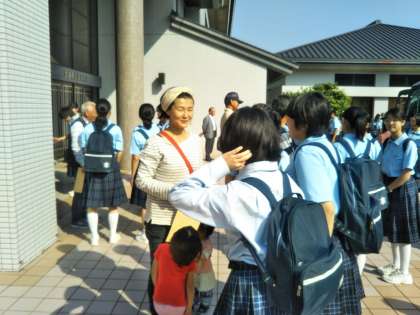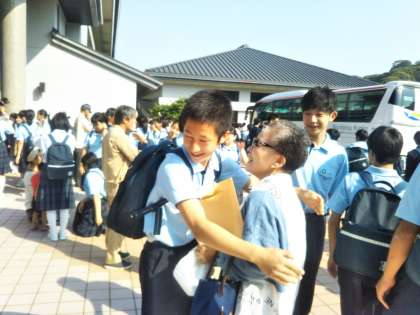 集合です。お世話になった受け入れ家庭の皆様にお礼のことばを。