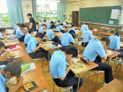 3年生 美術 彫刻刀で作品制作