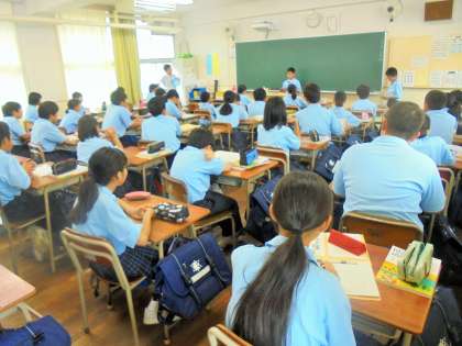 1年生 国語 1分間スピーチの授業風景です。