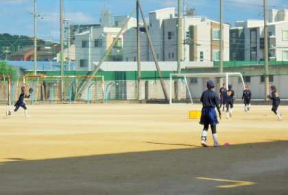 運動場の部活動風景です。