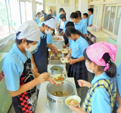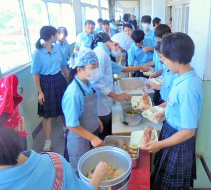 給食の配膳風景です。