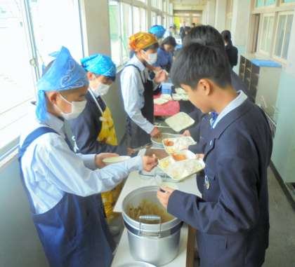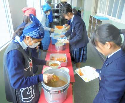 給食の配膳風景です。
