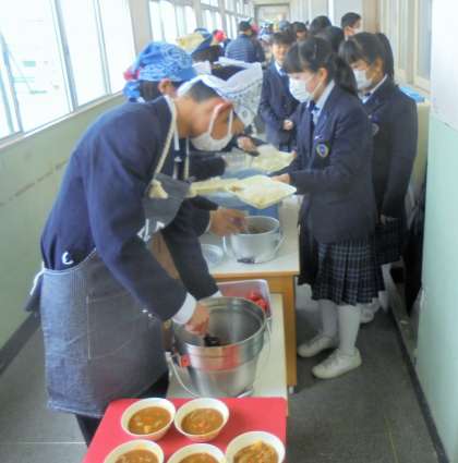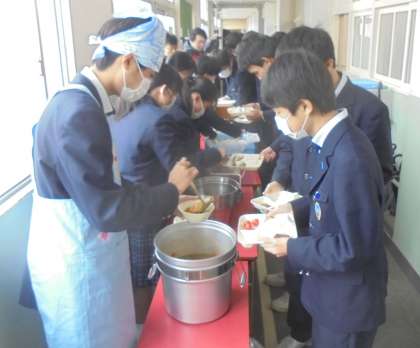 給食の配膳風景です。