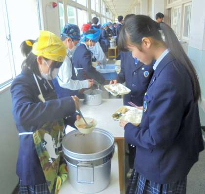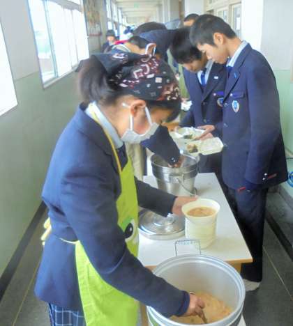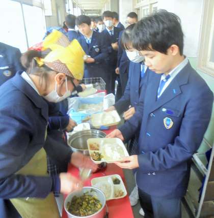 給食の配膳風景です。