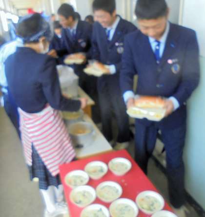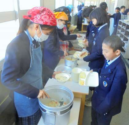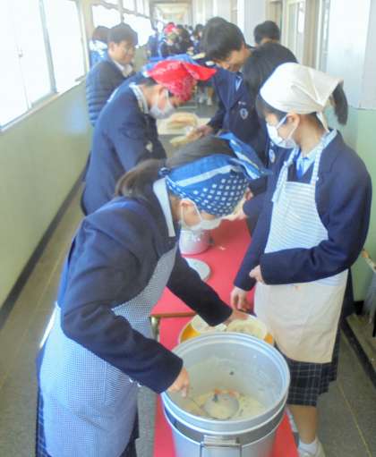 給食の配膳風景です。