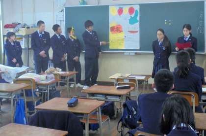 修学旅行に向けて、各グループで調べた内容を発表しました。