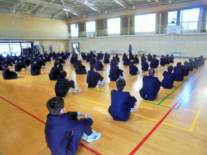2年生 分散登校 学年集会の様子です。