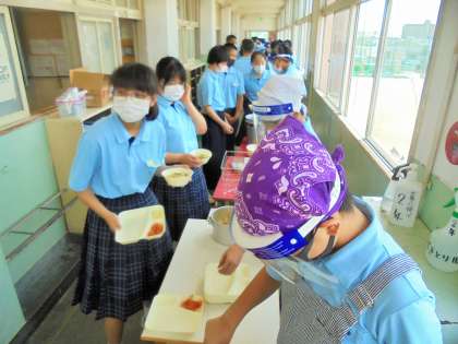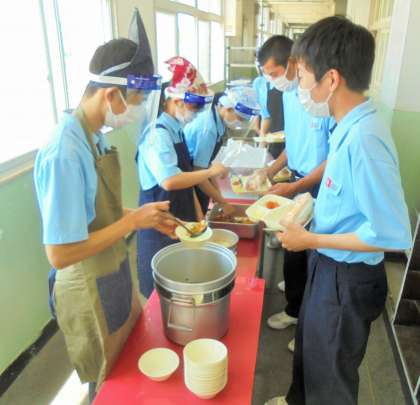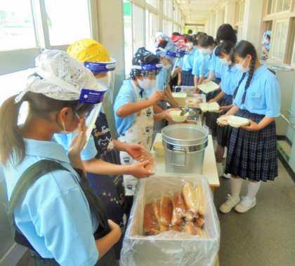 全員給食 配膳風景です。