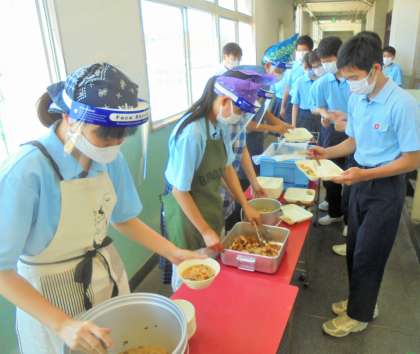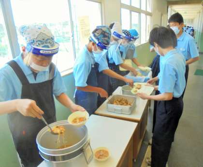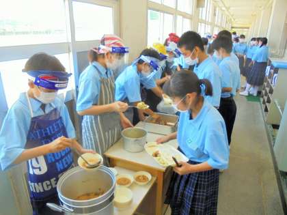 給食の配膳風景です。