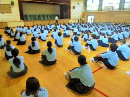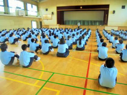 教育実習生からのあいさつも、学年全体で行うことができました。