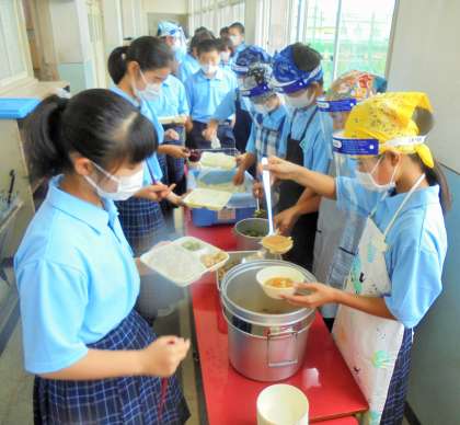 1年生 給食の配膳風景です。