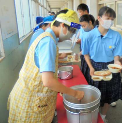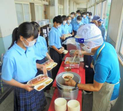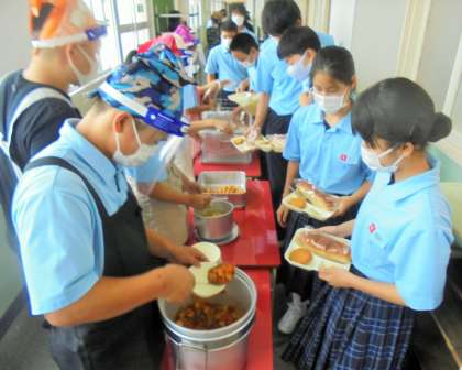 給食の配膳風景です。