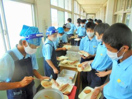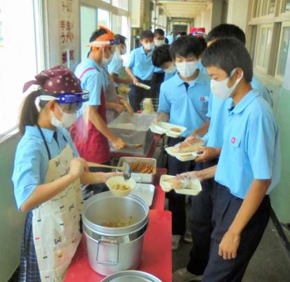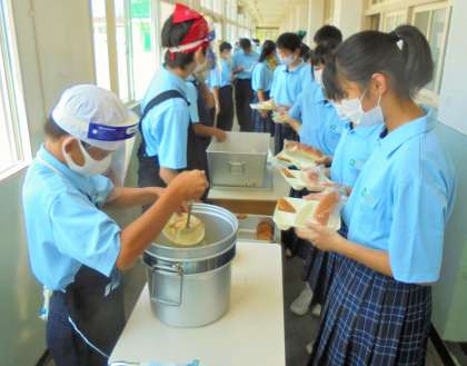 1年生 給食の配膳風景です。