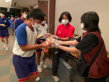 レクリエーションを終えて、メロンパンとオレンジジュースの夜食タイムです。