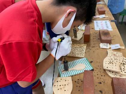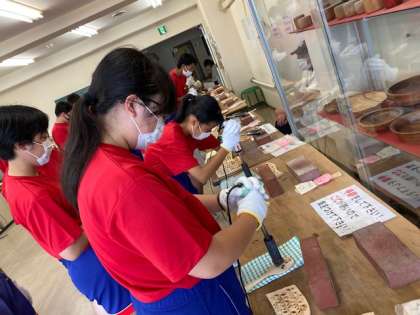 加工したしゃもじに、もみじ、鳥居、鹿の焼印を自由にデザインします。ステキなしゃもじが完成です!持って帰るのを楽しみにしていてください。