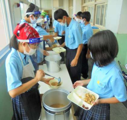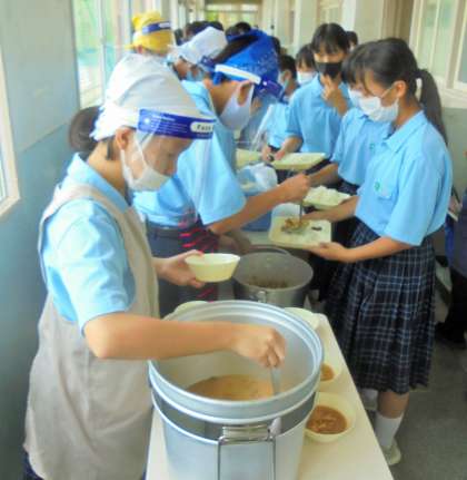給食の配膳風景です。