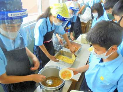 2年生 給食の配膳風景です。