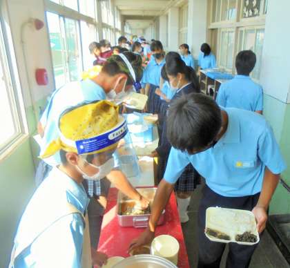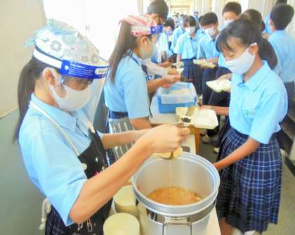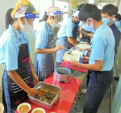 給食の配膳風景です。