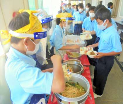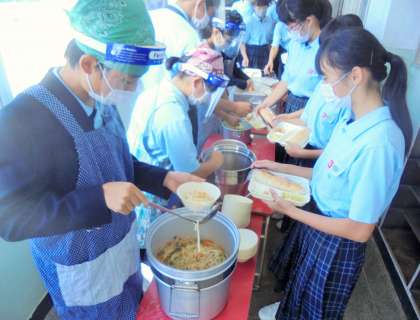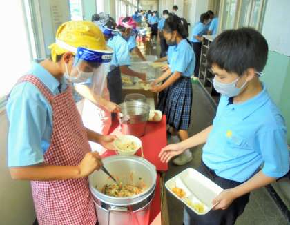 給食の配膳風景です。