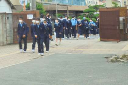 朝の登校風景です。