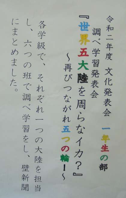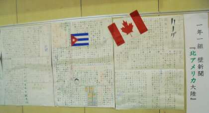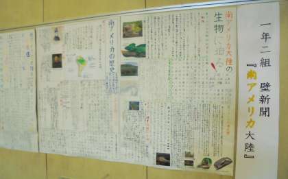 体育館に調べ学習で作成した壁新聞を展示しています。