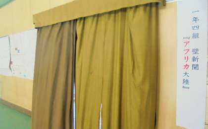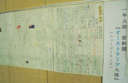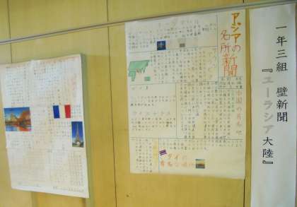 体育館に調べ学習で作成した壁新聞を展示しています。
